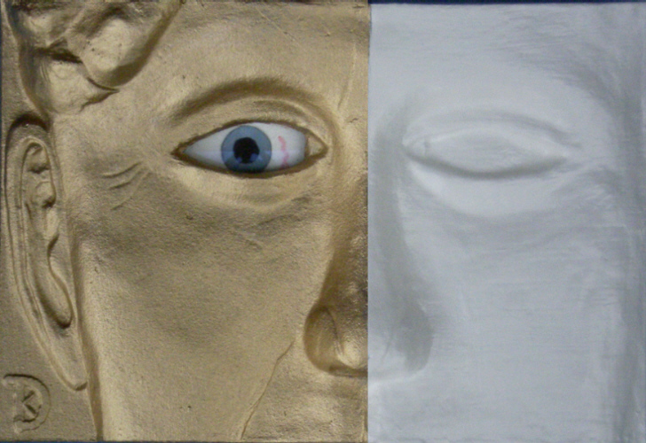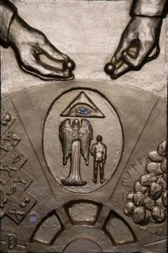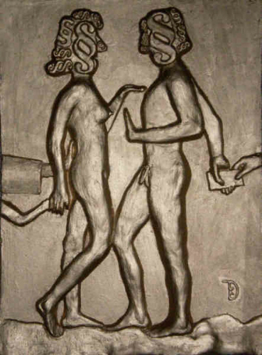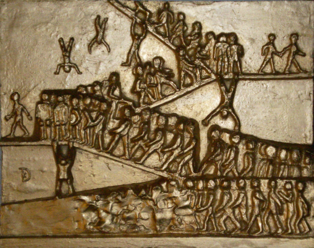 Wir werden nun einige wenige Medaillen/Reliefs etwas näher betrachten und bei wenigen Werken mögliche Einstiegspunkte für verschiedene Interpretationen geben. Es wird sich dabei nur um Beispiele für mögliche Einstiege in ganz subjektive Interpretationen handeln. Der Betrachter kann natürlich weitere und auch ganz andere Assoziationen für sich selbst erhalten und Interpretationen finden. Wir geben nur etwas widerwillig diese Beispiele, weil wir natürlich wissen, dass dadurch ein Teil des Reizes dieser Werke verloren geht. Andererseits haben wir erfahren müssen, dass es Betrachter dieser Werke gibt, die diesen absolut verständnislos gegenüberstehen, weil ihnen die Kunst des Interpretierens völlig fremd ist . Das ist nicht unverständlich, weil im heutigen Kunstbetrieb nach unserer Einschätzung sich viele Werke einer Interpretation durch den Betrachter verschließen oder ihn in ihrer Beliebigkeit "allein lassen" - aus verschiedenen Gründen. Ein "Kunstexperte" mag trotzdem durchaus auch bei solchen Werken natürlich eine schöne, tiefsinnige Betrachtungsweise und/oder eine bewunderungswürdige Theorie darauf aufbauen ....